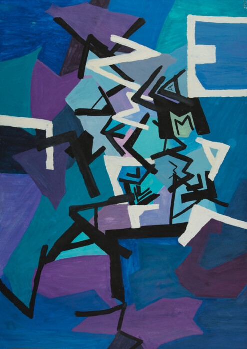 Schrift mit Malerei, Farbkreiden, Farbstiften