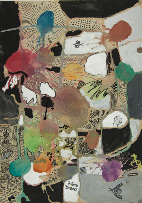 Mischtechnik: Spritztechnik und Weiterarbeit mit Filzstiften und Deckfarben