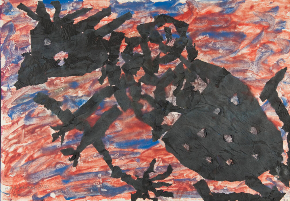 Collage aus Seidenpapier, Deckfarben und Kleister