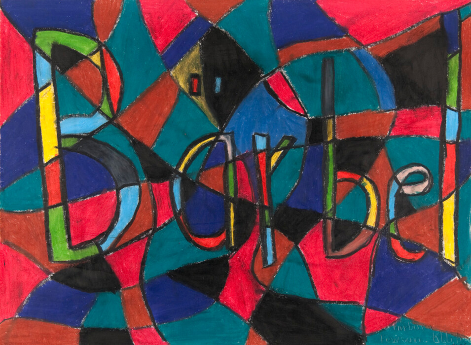 Schrift mit Malerei, Farbkreiden, Farbstiften