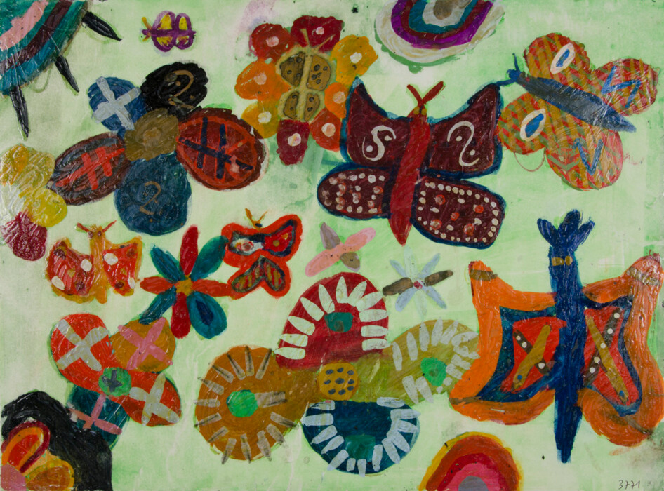 Bunte Blumen und Schmetterlinge
