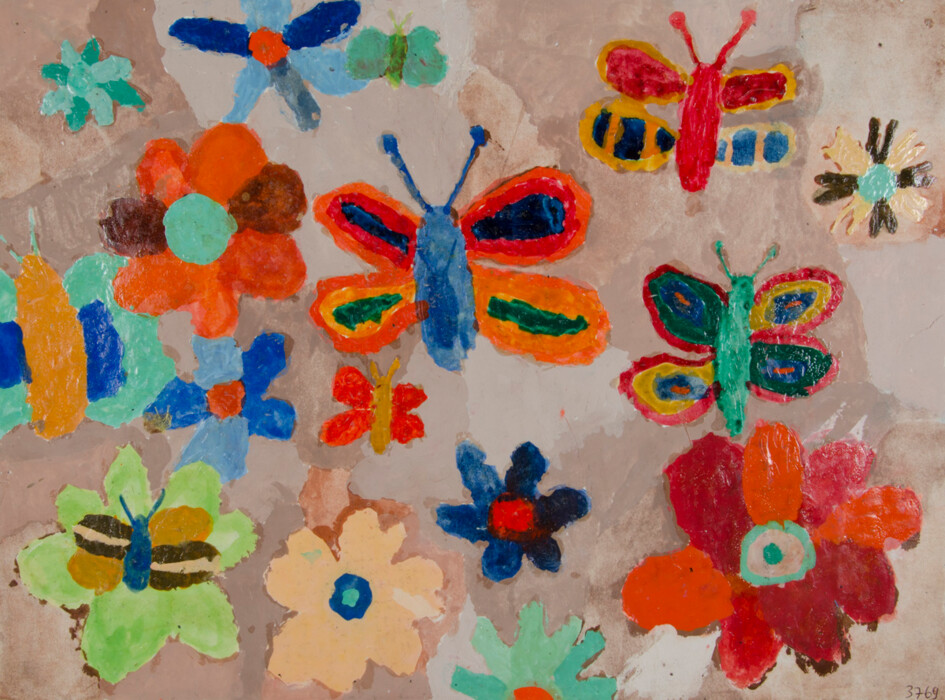 Bunte Blumen und Schmetterlinge