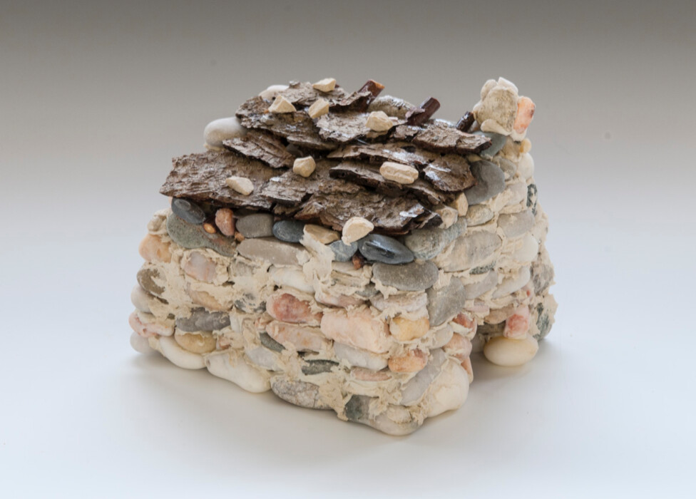 Kieselsteine, Holzstäbchen und Rinde aufkleben
