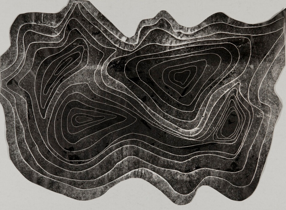 Druckstock aus Papierschichten mit Farbwalze eingefärbt