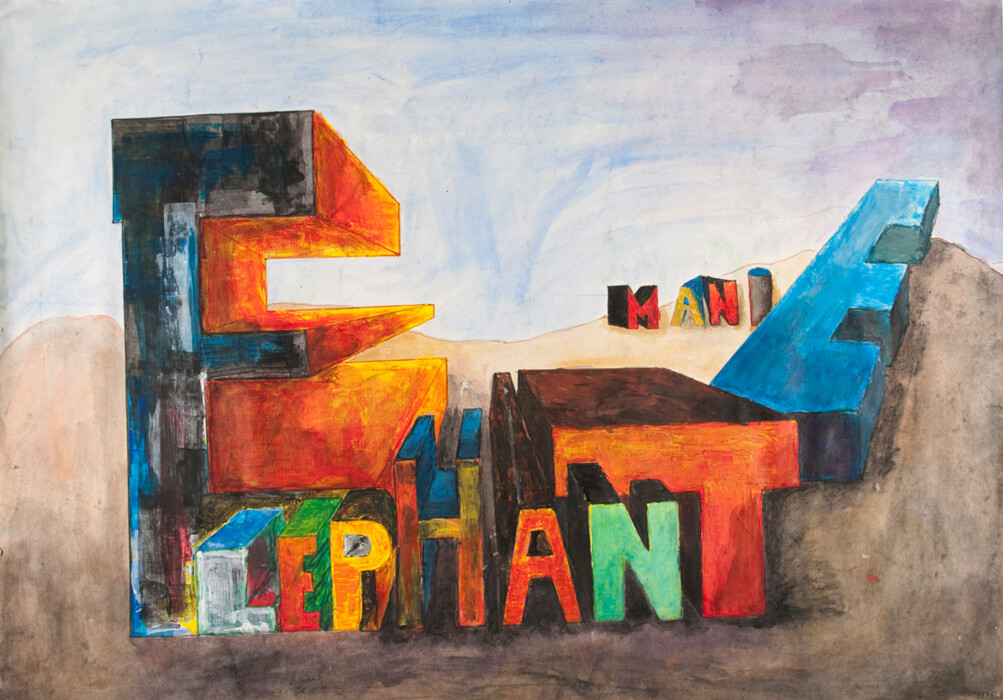Schrift mit Malerei, Farbkreiden, Farbstiften