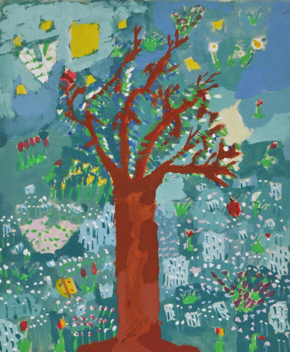 Blühender Baum auf Blumenwiese