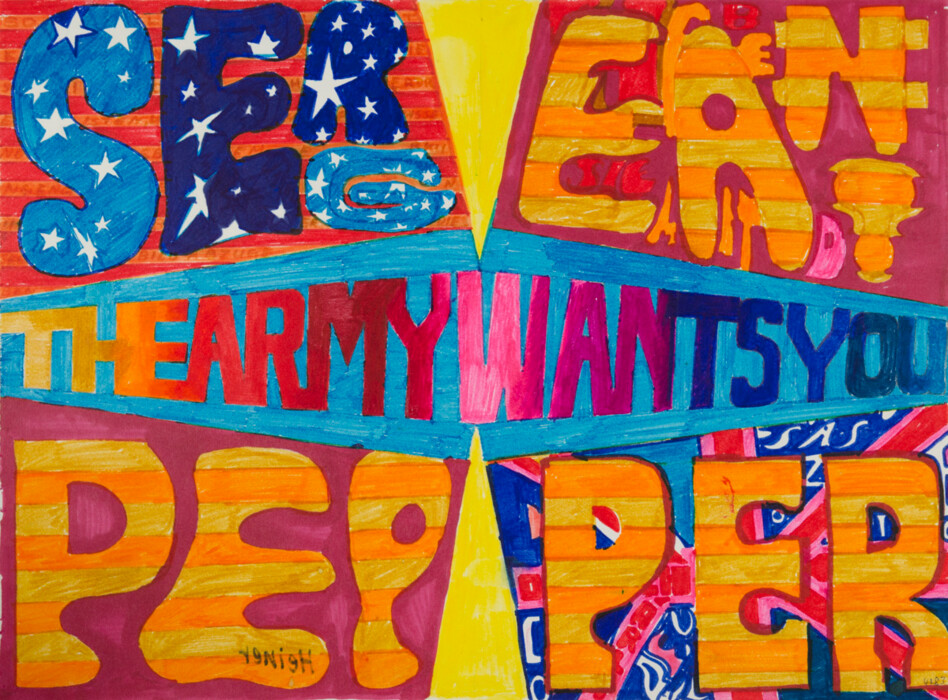 Schrift mit Malerei, Farbkreiden, Farbstiften
