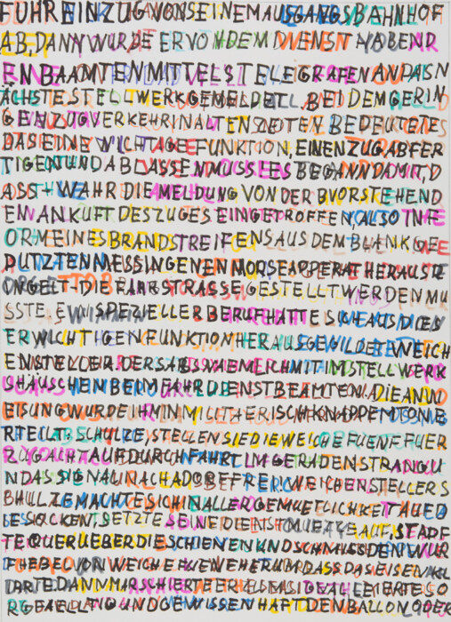 Schrift mit Malerei, Farbkreiden, Farbstiften
