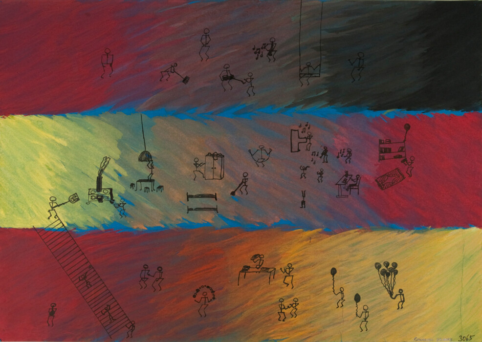 Strichmännchen auf gemaltem Grund