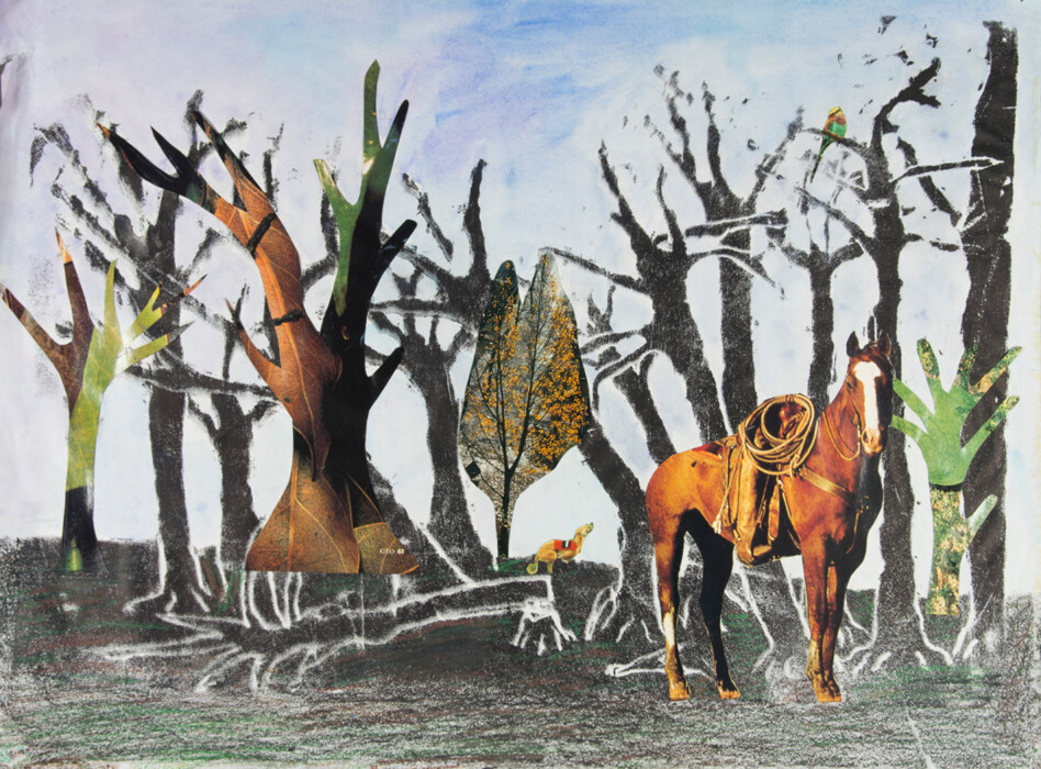 Collage aus Styropordruckteilen und Zeitungsbildern