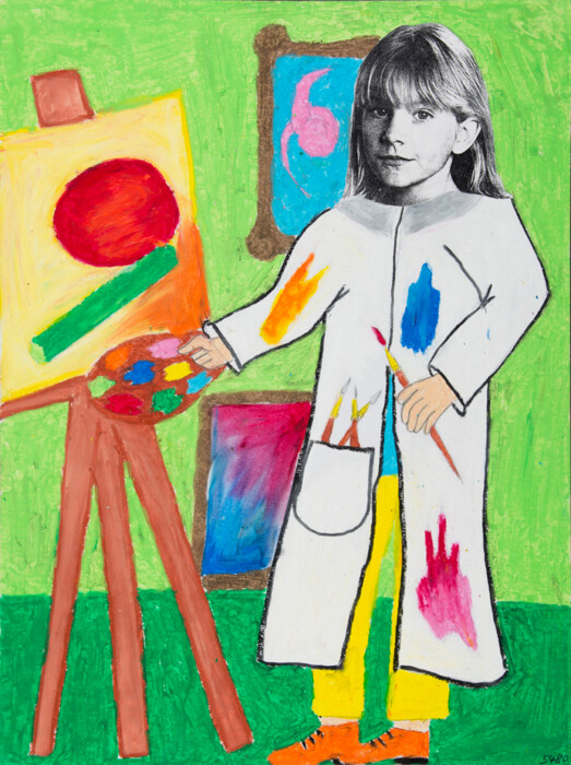 Collage aus Schwarz-Weiß-Fotokopien und Wachskreiden