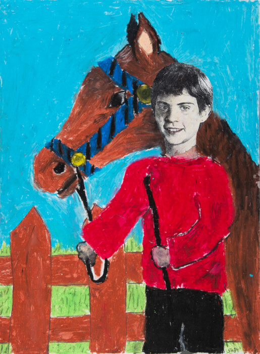 Collage aus Schwarz-Weiß-Fotokopien und Wachskreiden