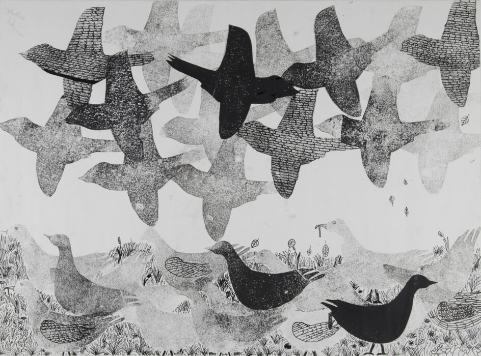 Kartondruck und Federzeichnung