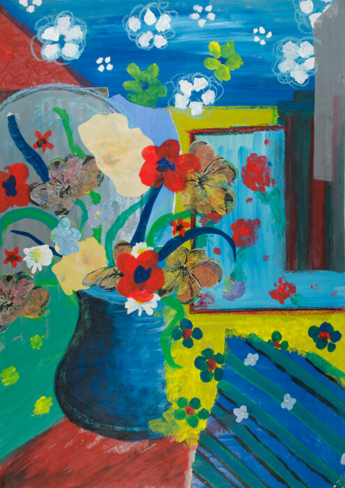 Mischtechnik: Deckfarben, Kreiden, Collage