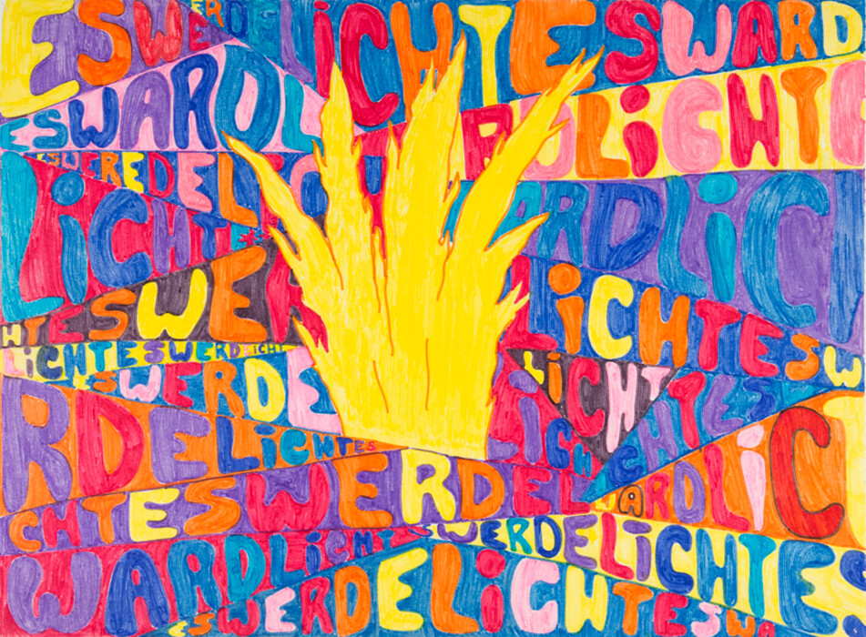 Schrift mit Malerei, Farbkreiden, Farbstiften