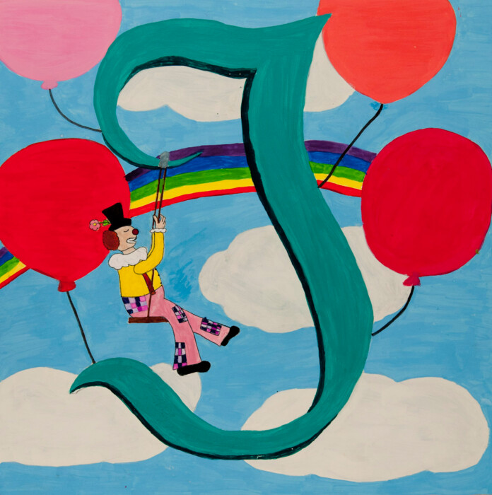 Schrift mit Malerei, Farbkreiden, Farbstiften