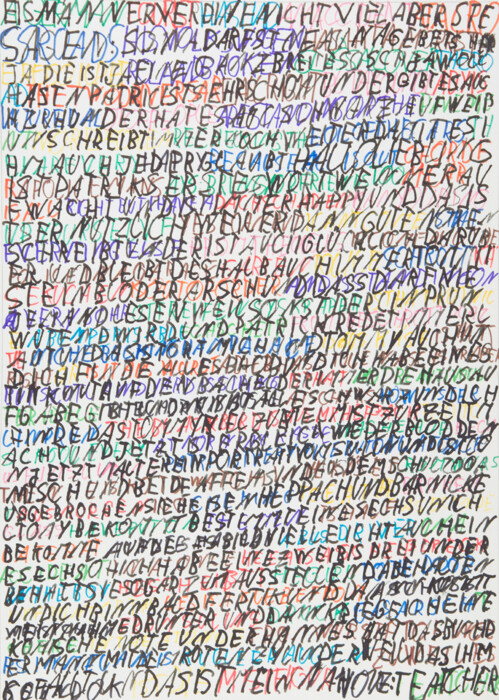 Schrift mit Malerei, Farbkreiden, Farbstiften