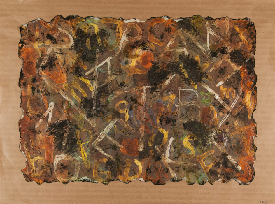 Schrift mit Malerei, Farbkreiden, Farbstiften