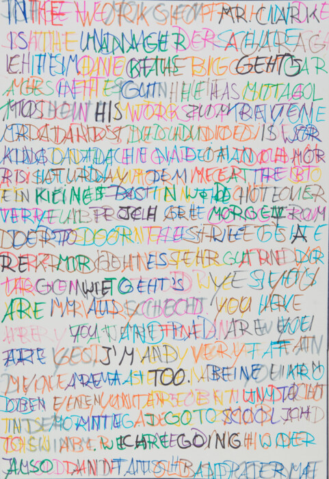Schrift mit Malerei, Farbkreiden, Farbstiften
