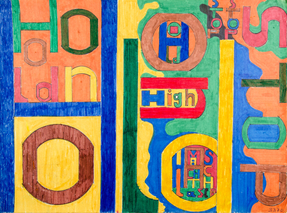 Schrift mit Malerei, Farbkreiden, Farbstiften