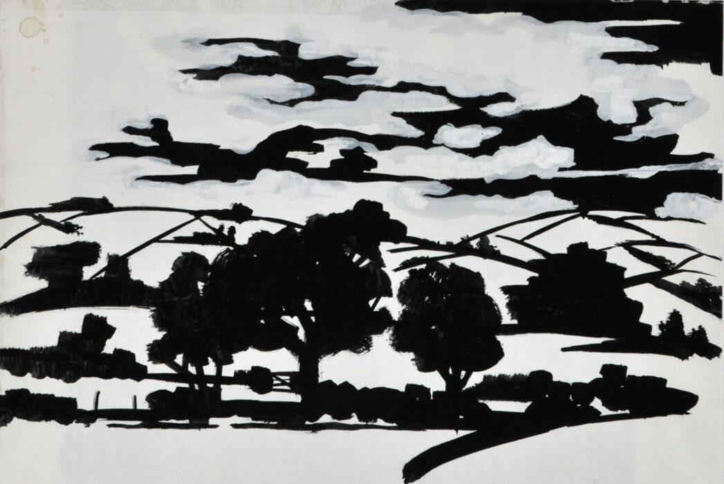 Tusche und Deckweiß mit Feder und Pinsel