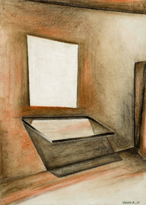 -Kreideskizzen zu Lichtstimmungen im Inneren der Box