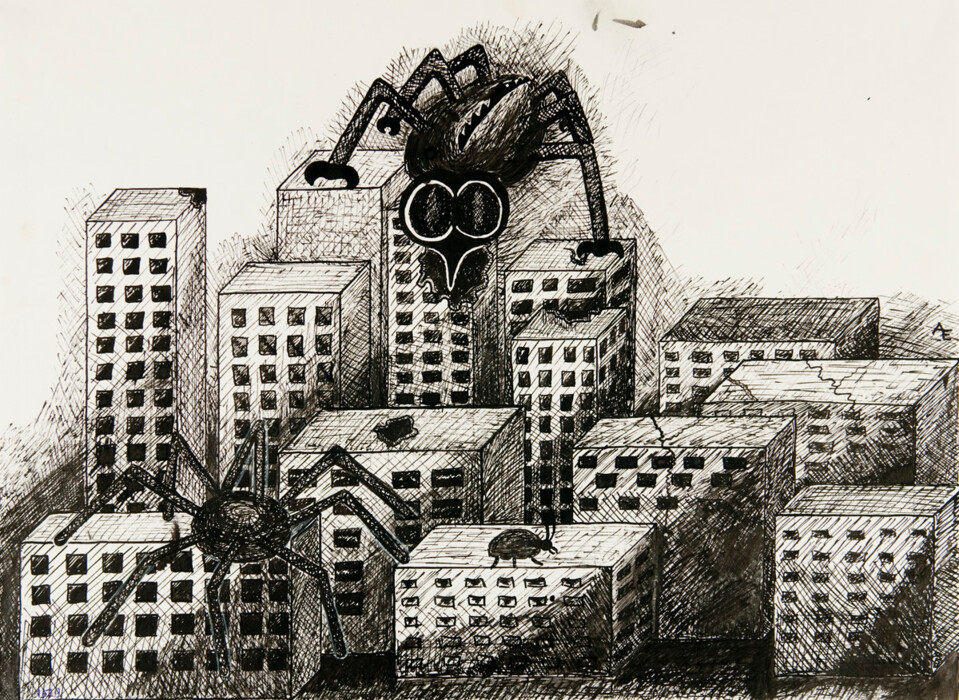 Tusche- und einfarbige Filz- und Holzstiftzeichnungen