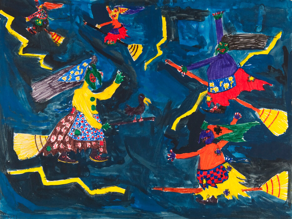 Mischtechnik: Filzstifte, Deckfarben, Wachskreiden