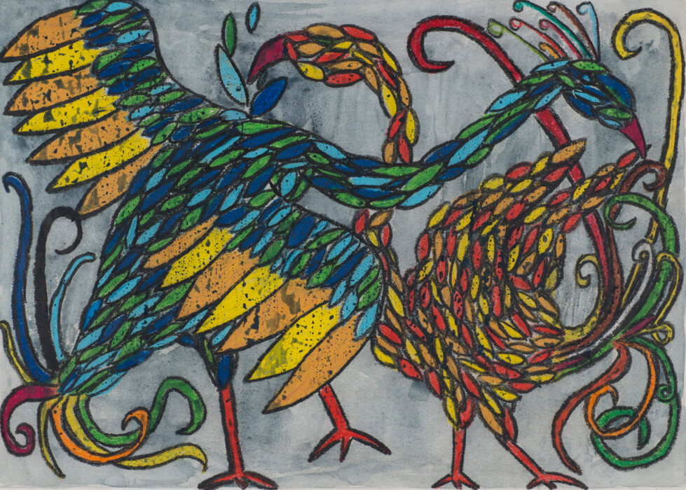 Ölkreiden mit Wasserfarben übermalt