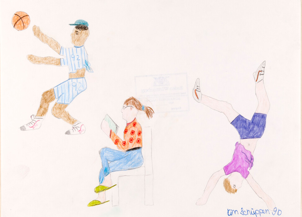 Bleistiftzeichnung, farbige Holzstifte, Filzstifte