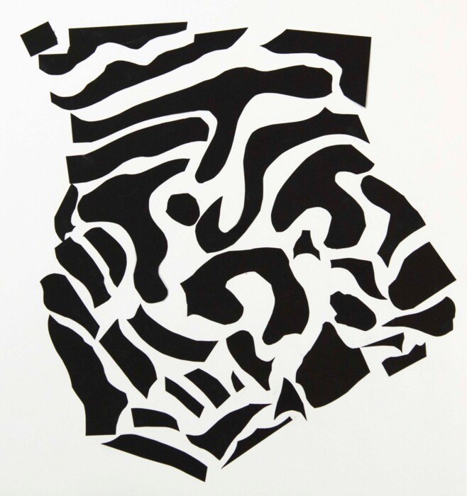 wurde der Würfel zerlegt und aus dem Raum in die Fläche gebracht. Jede Schülerin/jeder Schüler be-kam nun ein Teilstück des Würfels zur Bearbeitung. (Sozialer Aspekt: In unserem Handeln besteht ein übertragbarer Zusammenhang zwischen dem Ganzen und unserer Individualität.).Der Auftrag bestand darin, das schwarze Quadrat nun aufzulösen und später mit al-len Teilstücken wieder auf ein weißes Papier zu bringen. In der Weiterführung wurden dann Teile aus den entstandenen Werken aus schwar-zem Ton modelliert und so entstand eine Gemeinschaftsarbeit, die von der Fläche wieder in den Raum greift.Hinweise: „Wie oben schon genannt, befanden wir uns mit der Arbeit auch im Bereich des Sozialen Lernens. Genauso gut könnten in Mathematik Berechnungen zum Würfel und seiner Fläche mit eingebracht werden.