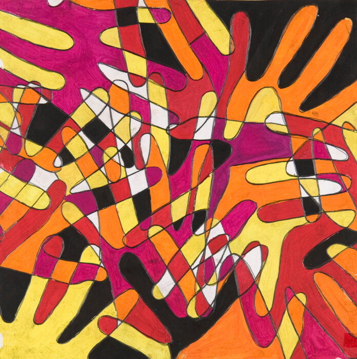 Deckfarben und schwarze Stifte