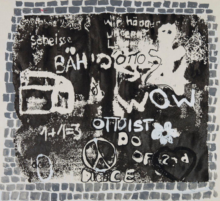 Styropor-Ätzung mit Deckweiß und Tuscheweiterarbeit