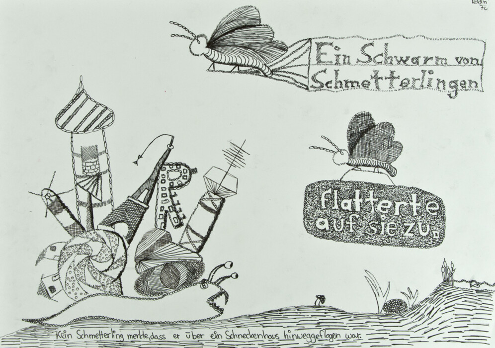 Illustration: Ein Schwarm von Schmetterlingen flatterete auf sie zu