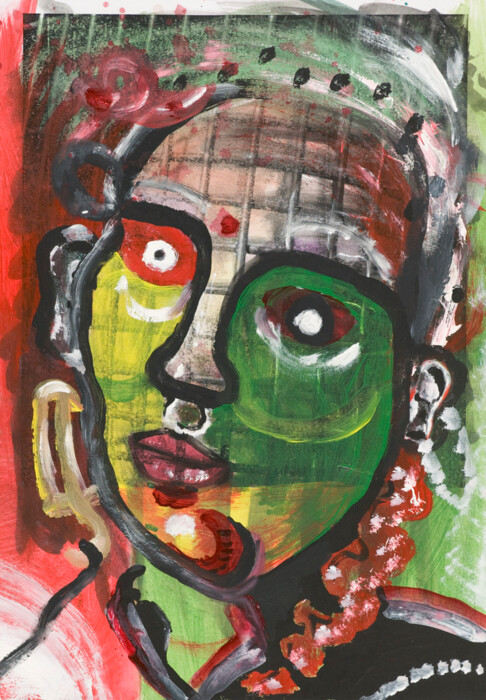 Deckfarben, Übermalung einer Schwarz-Weiß-Kopie