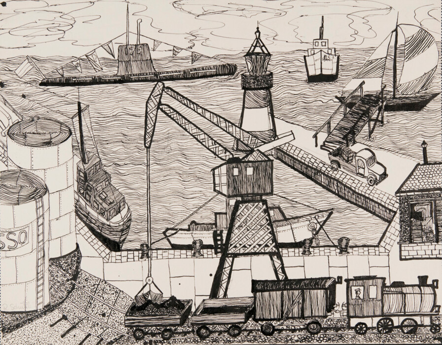 Tusche- und einfarbige Filz- und Holzstiftzeichnungen