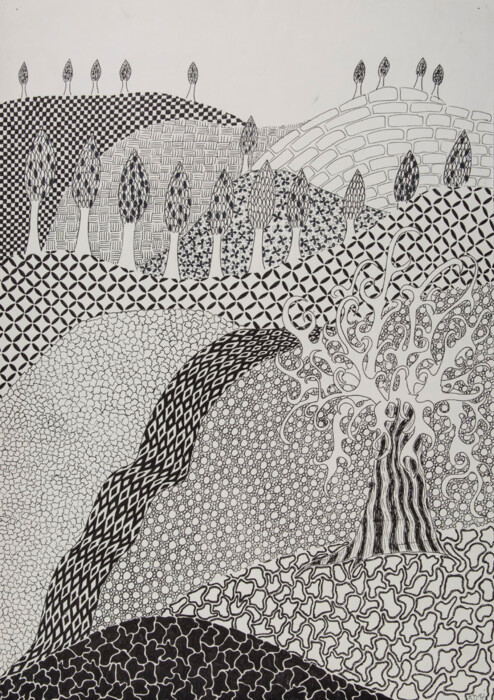 Tusche- und einfarbige Filz- und Holzstiftzeichnungen