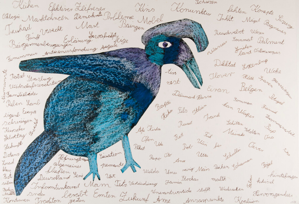 Vogel mit Wörtern mit vielen Rechtschreibfehlern