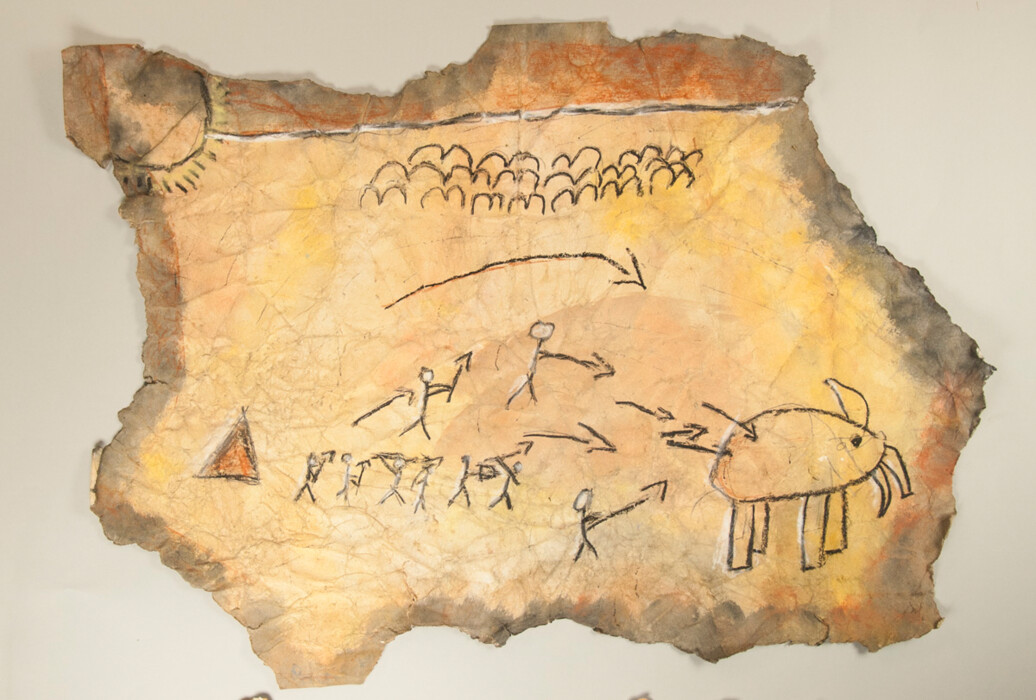 Knittertechnik mit Deckfarben und verschiedenen Stiften und Farben
