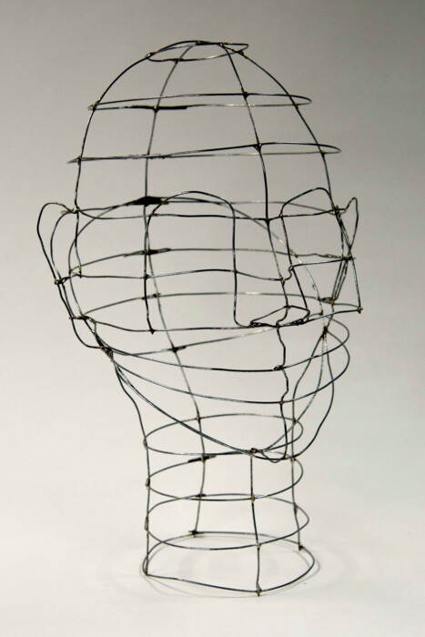 Aufgabenstellung/Unterrichtsverlauf: Mit Draht, Lötkolben und Lötdraht sollen die Schüler/-innen einen Kopf fertigen, welcher an den naturalistischen Proportionen orientiert ist. Sie sollen dabei das plastische Volumen und gedachte Linien um den Kopf erfassen. Im Anschluss wird der Kopf beleuchtet und vor verschiedenen Hintergründen fotografiert. So soll eine Fotografie entstehen, deren Qualität durch die unterschiedlichen Linienstärken, Verdichtungen und Auflösungen bestimmt wird. Hinweise: Die Aufgabenstellung, einen Drahtkopf anzufertigen, war eine Zwischenaufgabe, um das Verständnis für das plastische Volumen des Kopfes zu