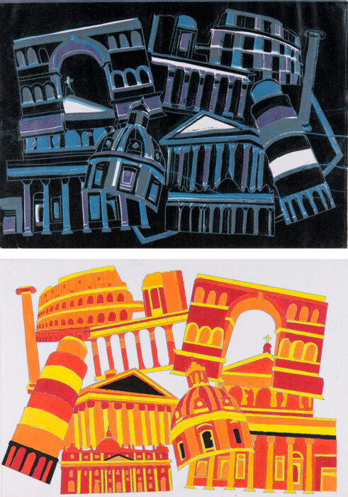 Bunte Zeichnung und Linoldruck (Verlorene Platte)