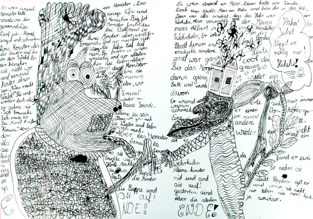 Zwei Kritzelmonster erzählen sich etwas
