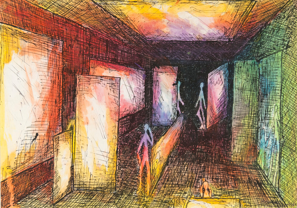 Filzstifte und Farbstifte, mit Wasser vermalt