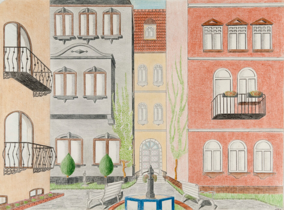 Zeichnerische und malerische Ausarbeitung einer in Umrissen gegebenen Vorlage