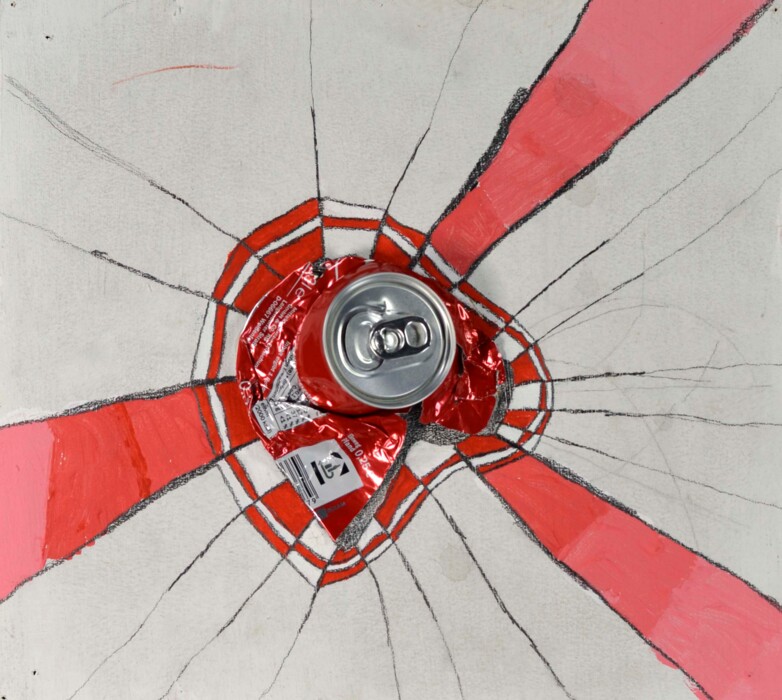 Geräusch der Dose beim Zusammendrücken vergleichbar mit Rissbildung bei Glas.