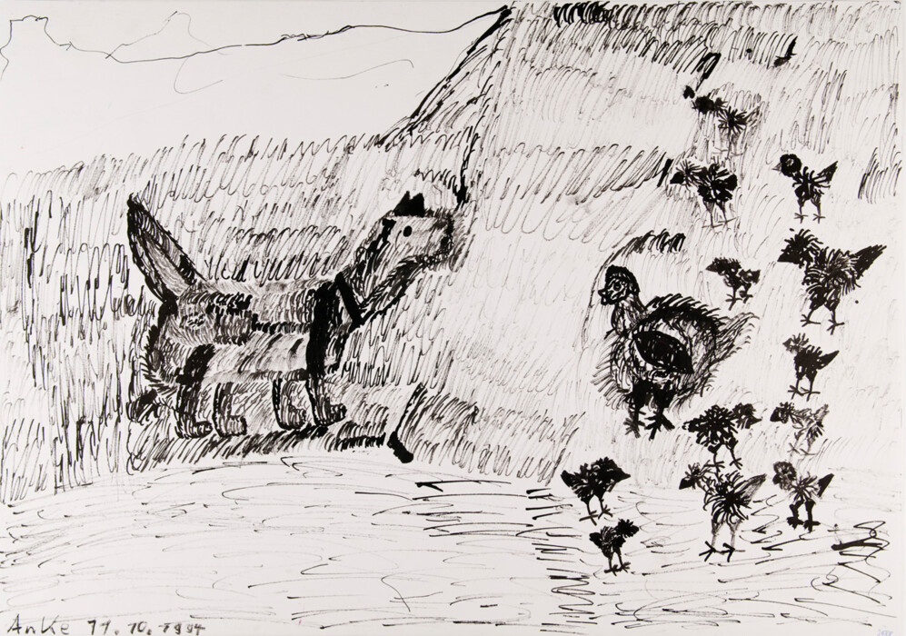 Tusche- und einfarbige Filz- und Holzstiftzeichnungen