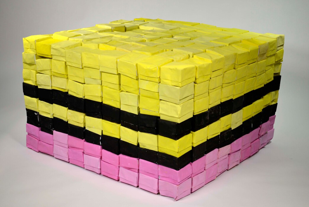 Aufgabenstellung (Vorüberlegungen, Einstieg, Weiterführung):Einführung der Parallelperspektive durch Falten eines Quaders mit anschließender bildnerischer UmsetzungHinweise:Gemeinschaftsarbeit nach einer Schüleridee, geleietet von individuellen Malereien. Unterschiedlichkeit der Quader als Ausdruck der Heterogenität der Schüler.Bezug zur Kunst und/oder ästhetischen Umwelt:Kennenlernen von Objekten der EAT ART, Pop Art und der Technik der Akkumulation.
