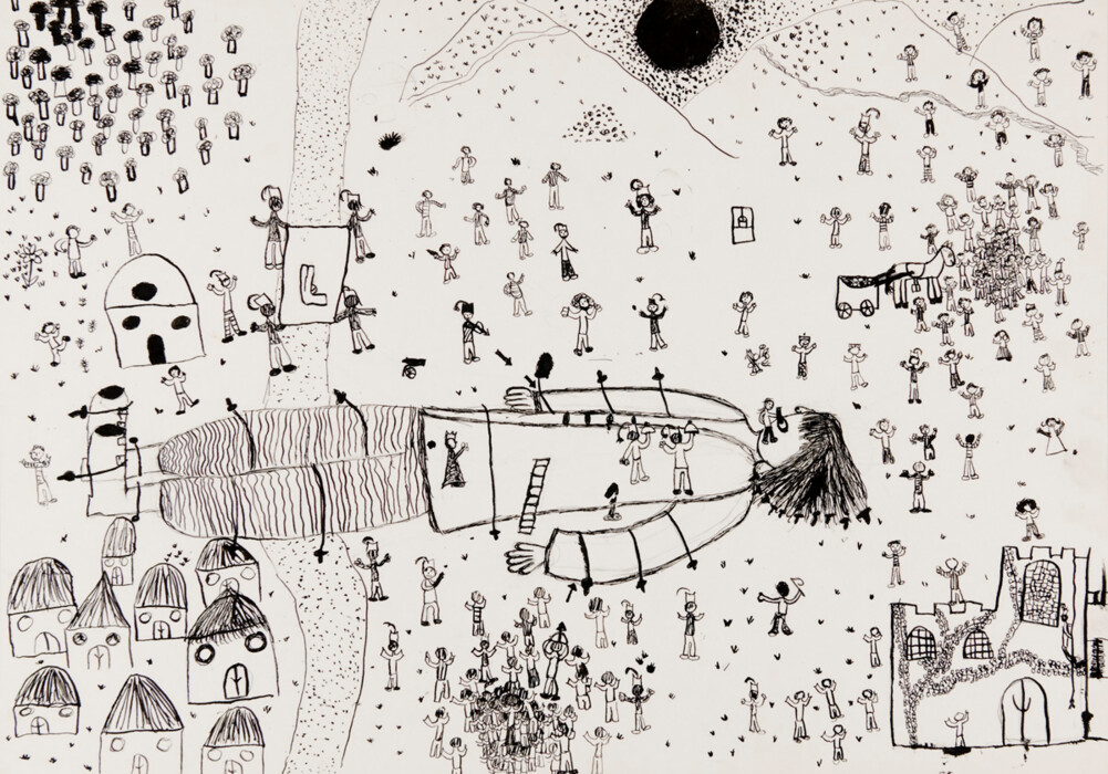 Tusche- und einfarbige Filz- und Holzstiftzeichnungen