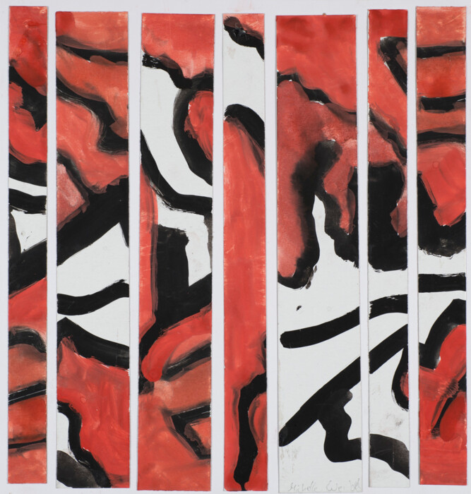 Collage aus in Streifen geschnittenem, gemaltem Bild