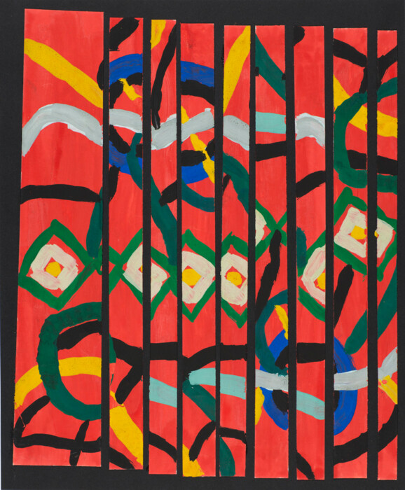 Collage aus in Streifen geschnittenem, gemaltem Bild